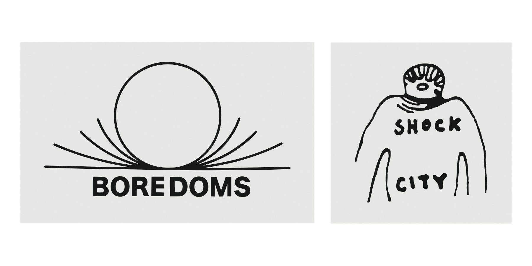 一つはSHOCK CITYロゴ、一つはBOREDOMSロゴ。