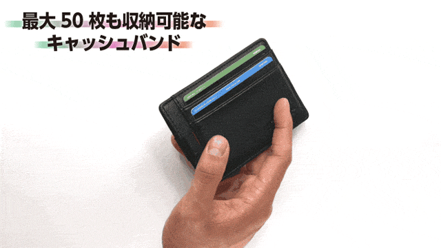 BANDOスリムな見た目からは想像できないできない収納力を持っています。カードは最大15枚、紙幣は最大50枚も収納可能です。ウォレットが薄くなったからといって普段持ち歩いてるカードを減らす必要はありません。また、カードも紙幣も素早く取り出せる設計になっています。いちいちウォレットを開く必要もなくスマートなお会計が可能に。