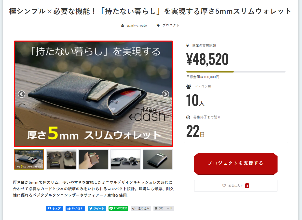 2019/11/08 18:44サポーターの皆様お世話になっております。BANDOプロジェクト実行者のスパーキークリエイト株式会社の内山です。この場をお借りして、弊社の新しいプロジェクトを紹介させて頂きます。弊社では現在、BANDOと同じメーカーであるDASH Walletカンパニーのスリムウォレット「Dash Slim Wallet 3.0」のプロジェクトを公開しております。Dash Slim Wallet 3.0は収納を最小限にすることでコンパクトでスリムな追求した財布です。Machi-ya限定価格でお得な価格で手に入るチャンスです。是非以下のURLよりご確認下さい。https://camp-fire.jp/projects/view/205341 以上、ご興味ある方はご確認頂けますと幸いです。 もっと見る