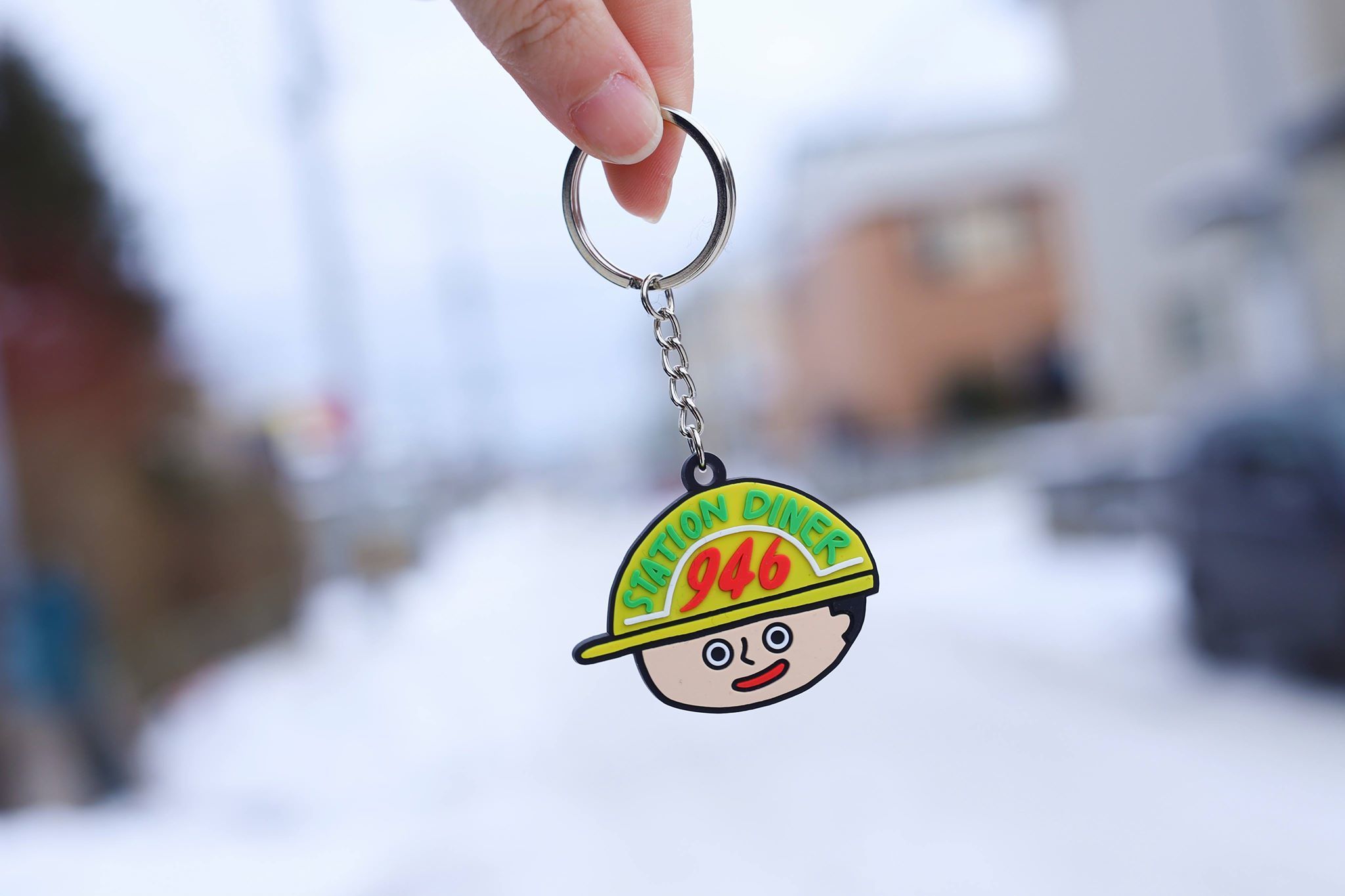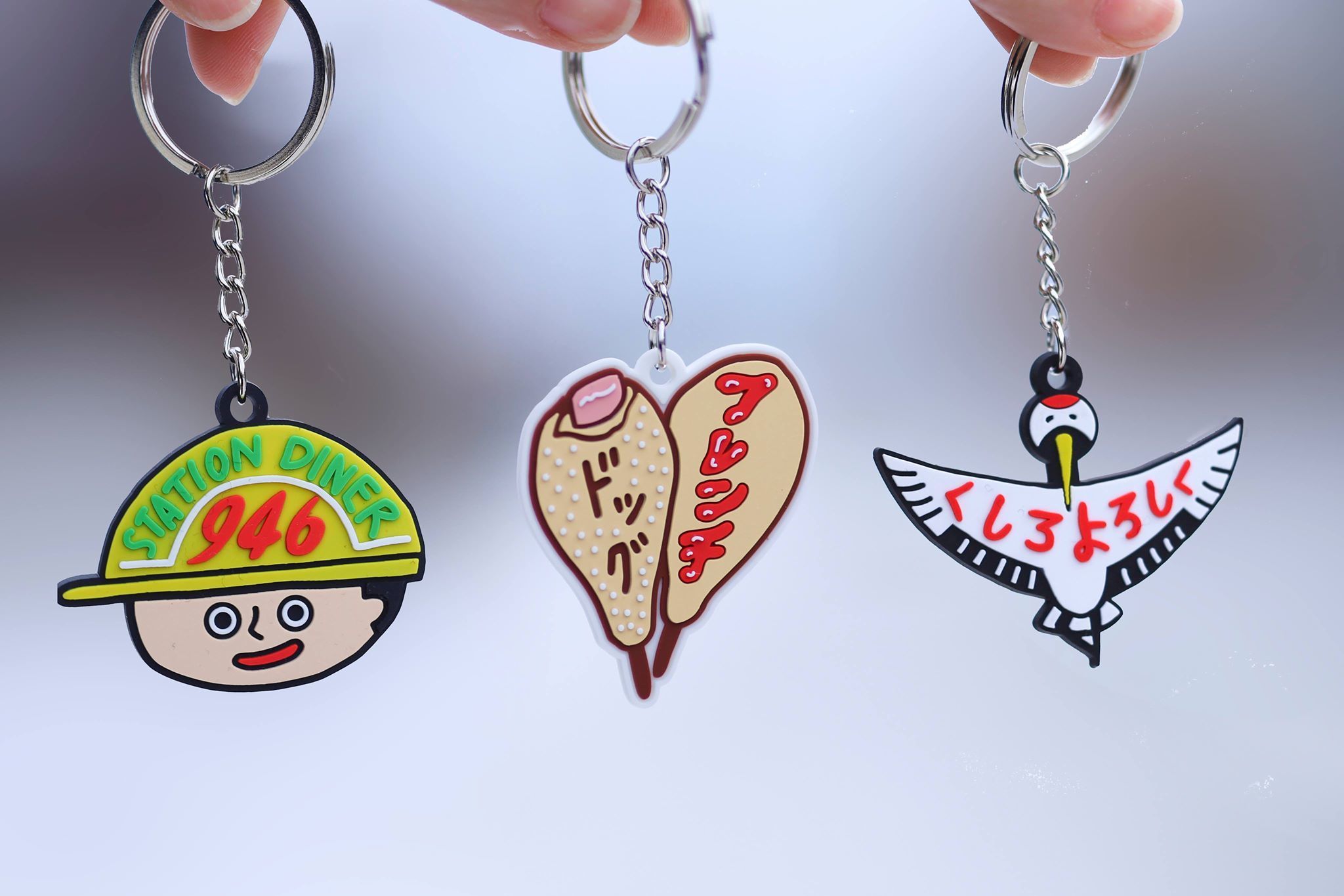 でこぼこした柔らか素材がなんだか懐かしいラバーキーホルダーです。