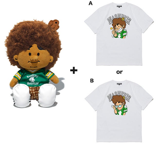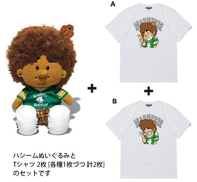 ハシームぬいぐるみ 1体とハシームTee 1枚[AかBのどちらか1種] のセットです。