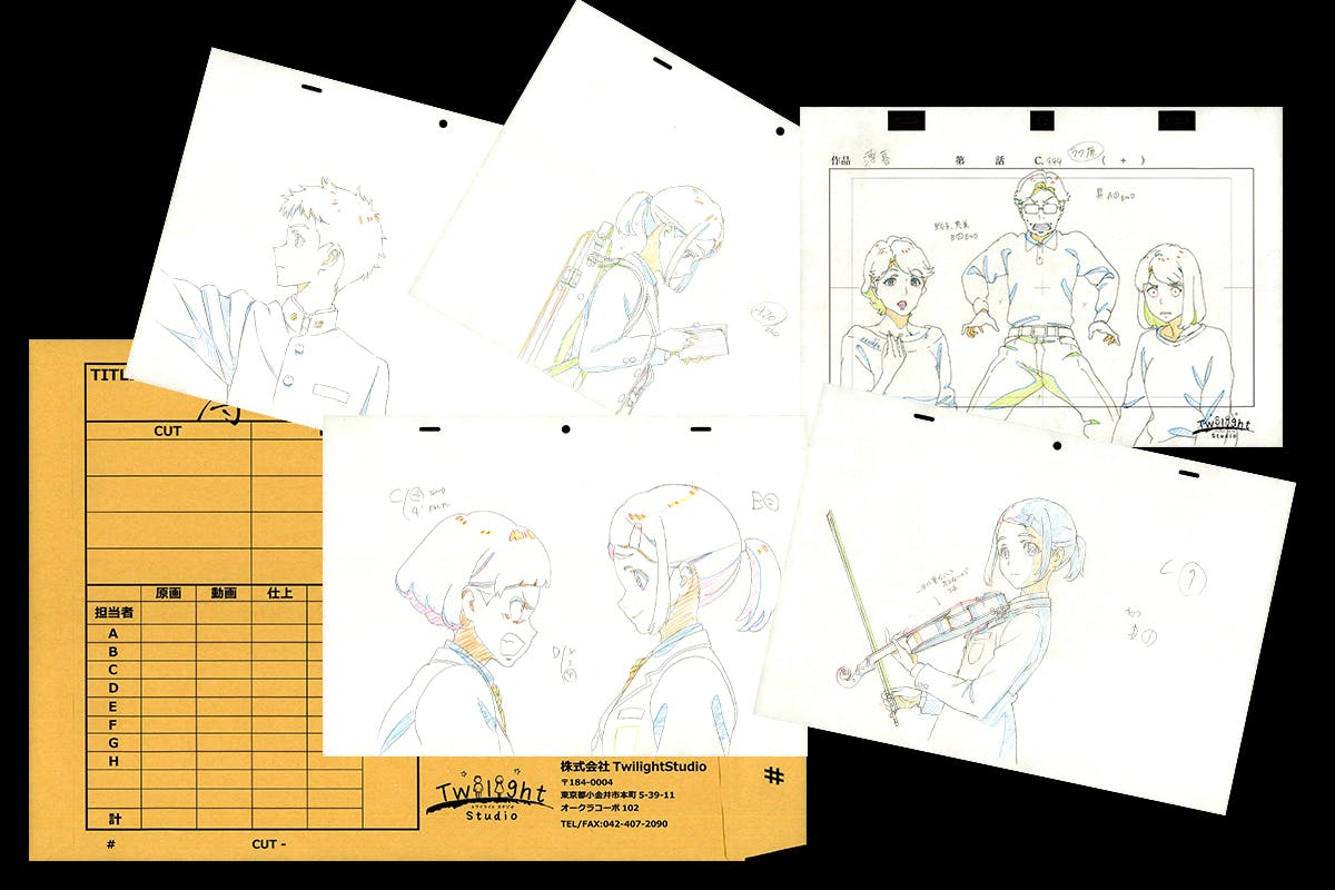 実際に制作で使用しているカット袋に、クリエイターが実際に描いた生原画、動画を入れてお届けします。