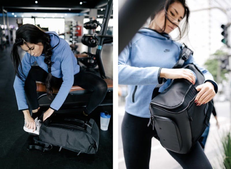 多忙なビジネスパーソンがスポーツやエクササイズを毎日の生活に取り入れるには、ジム用のシューズやウェアを、ノートパソコンなどの仕事道具と一緒に持ち歩かなければならないでしょう。このニーズに答えるために生まれたのが「DAYFARERバックパック」です。