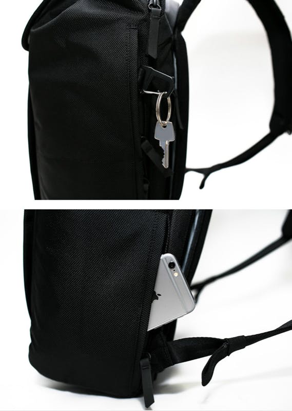 クイックアクセスポケット:スマートフォンや鍵を収納し、すばやく取り出せる