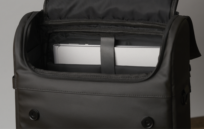 取り外し可能なノートパソコン専用ケース。空港のセキュリティチェックも素早く通過できます。