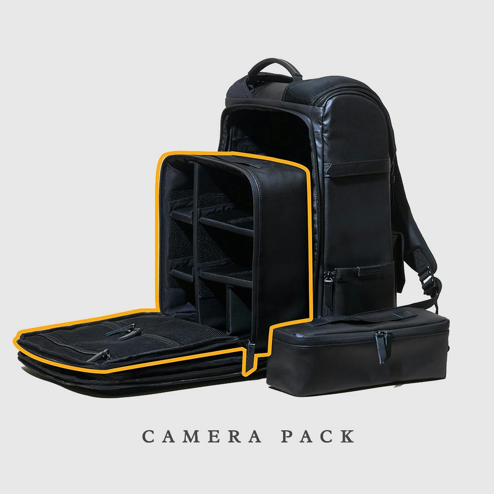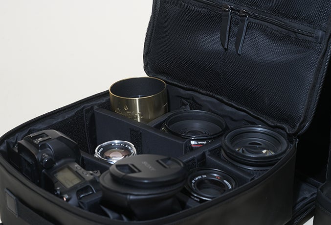 撮影に必要なものをすべて収納できるカメラパック