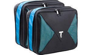 Lサイズは14.25”X10.1”X4”(約36.2cm X 約25.7cm X 約10.2cm)で、フルサイズのスーツケースにフィットします。