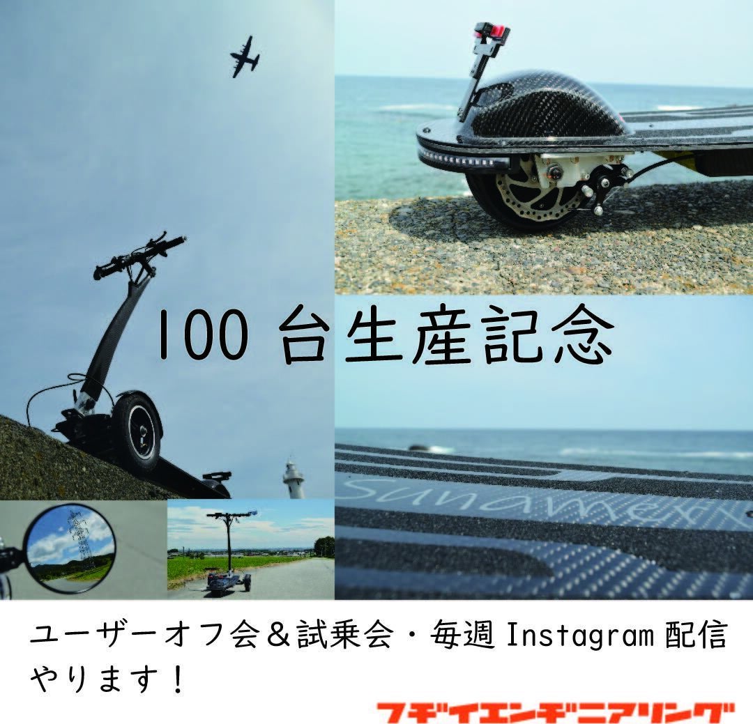 2020/10/23 18:05【祝★Sunameri累計100台生産達成】おかげさまで、来月Sunameriの生産累計100台を達成します。これまでSunameriをご購入くださった皆様と、応援してくださった皆様、これから購入を考えている皆様に向けて、2つの企画を考えています。特に私たちが是非取り組みたかったのが、Sunameriユーザーオフ会!Sunameriの個性を活かして、スラロームや8の字の楽しさを皆さんと共有したい。ということで、企画させていただきました。日時 :11月21日(土)13:00~17:00場所 :パイロンパーク鈴鹿参加費:お一人3,000円パイロンパーク鈴鹿さんはもともと、オートバイの練習場なのですが、今回特別にSunameriを貸し切りで使用させていただけることとなりました。先日お邪魔した時は、この大きさ感がちょうどよく、非常に盛り上がるなと感じました。詳細はこちらから。是非チェックしてみてください。https://fujiieng.com/anniversary-event-page もっと見る
