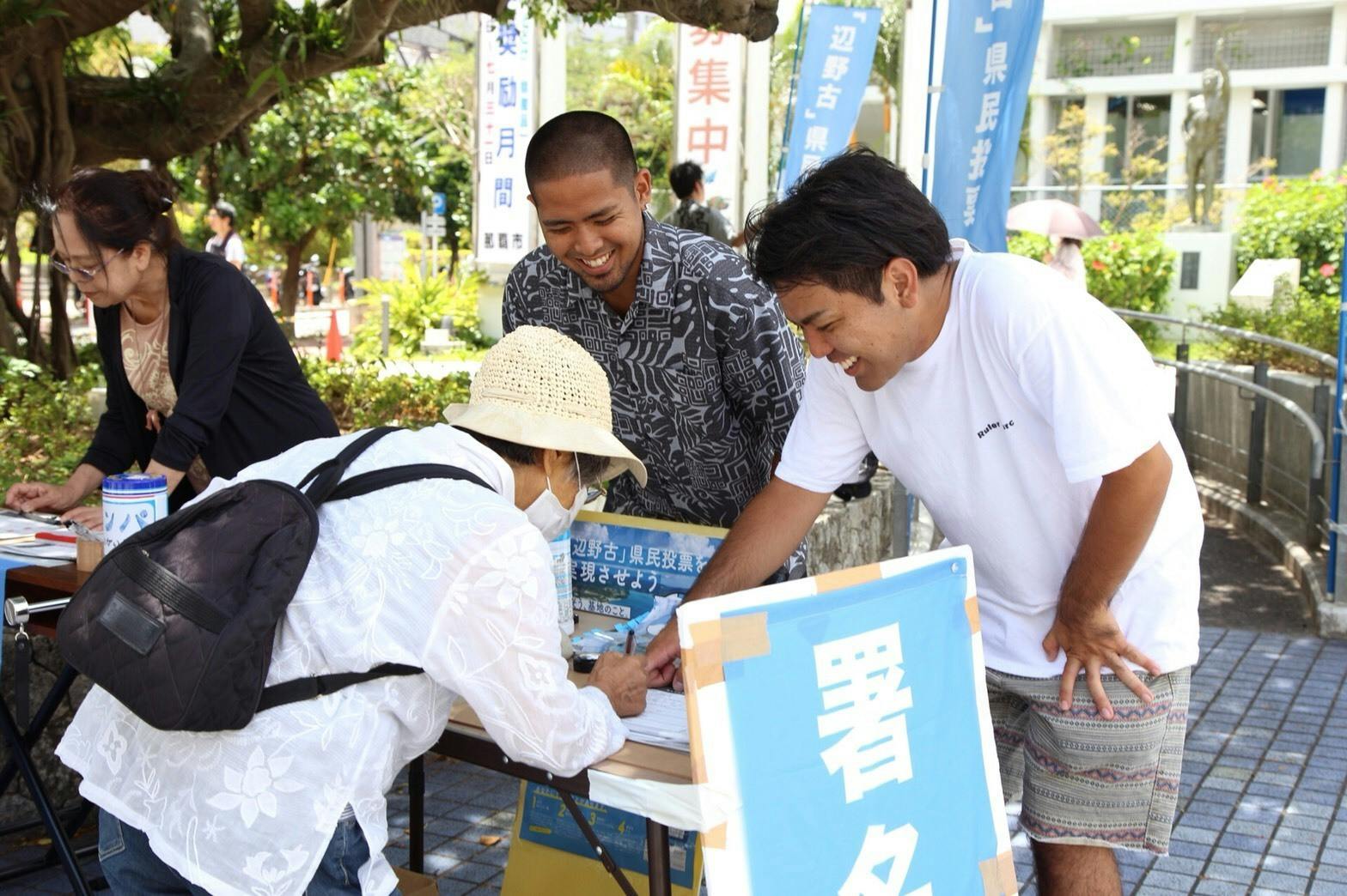 これまで県民投票の動きを進めてきた「辺野古」県民投票の会(県民投票の会)は「辺野古米軍基地建設の賛否を問う県民投票」を実現するために、沖縄の学生、若者、弁護士、司法書士、経営者、戦争体験者、働くパパやママなど様々なバックグラウンドを持った人たちが参加している団体です。