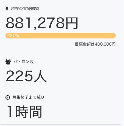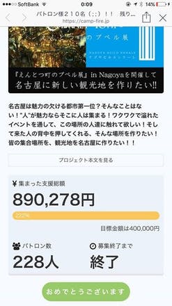 2016/11/13 12:31えんとつ町のプペル展名古屋主催の沼田です。 クラウドファンディング『えんとつ町のプペル展in名古屋を通して名古屋に新しい観光地を作りたい!』 昨日23:59をもって終了致しました。 結果はパトロン数228人、支援金額890,278円、達成率222%。 予想を遥かに超える結果が出ました。 最初は目標金額の40万円に届くかも微妙で、どうしたら多くの人に伝わるのか、毎日頭を悩ませていました。 スタッフと日々話し合い改善点を探していました。 そしたら終了一週間前から急にアクセスが伸び始め、同時にパトロン数も増えてきました。 パトロンの中には日頃お世話になってる方、最近会えてない仲間、会ったことはないけど純粋に応援してくれてる方… 支援は出来ないけど、拡散に協力してくれた方もたくさん。 そして、一丸となって動いてくれたスタッフ。 正に全員で動いた結果だと思います。 最終日は特に凄まじい伸び率を記録しました。 どんどん伸びていく数字に、最初は何が起きてるか理解出来ませんでした。 本当に1人1人の動きがこの奇跡を起こしてくれました。 このプロジェクトに関わってくれた全ての方々に感謝しております。 そして、これからがスタート!! 多くの人の気持ちを受け取り、最高のプペル展を開催できるよう、今日から気合を入れ直して参ります。 皆さん、本当にありがとうございました! そして、引き続き応援宜しくお願いします!! もっと見る