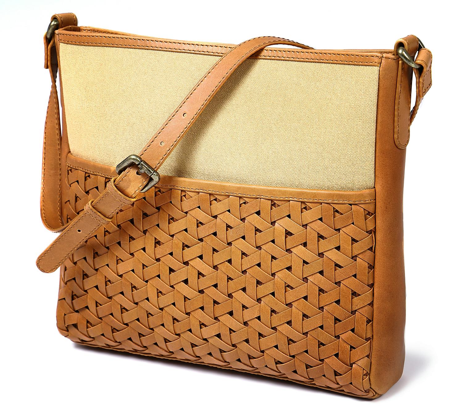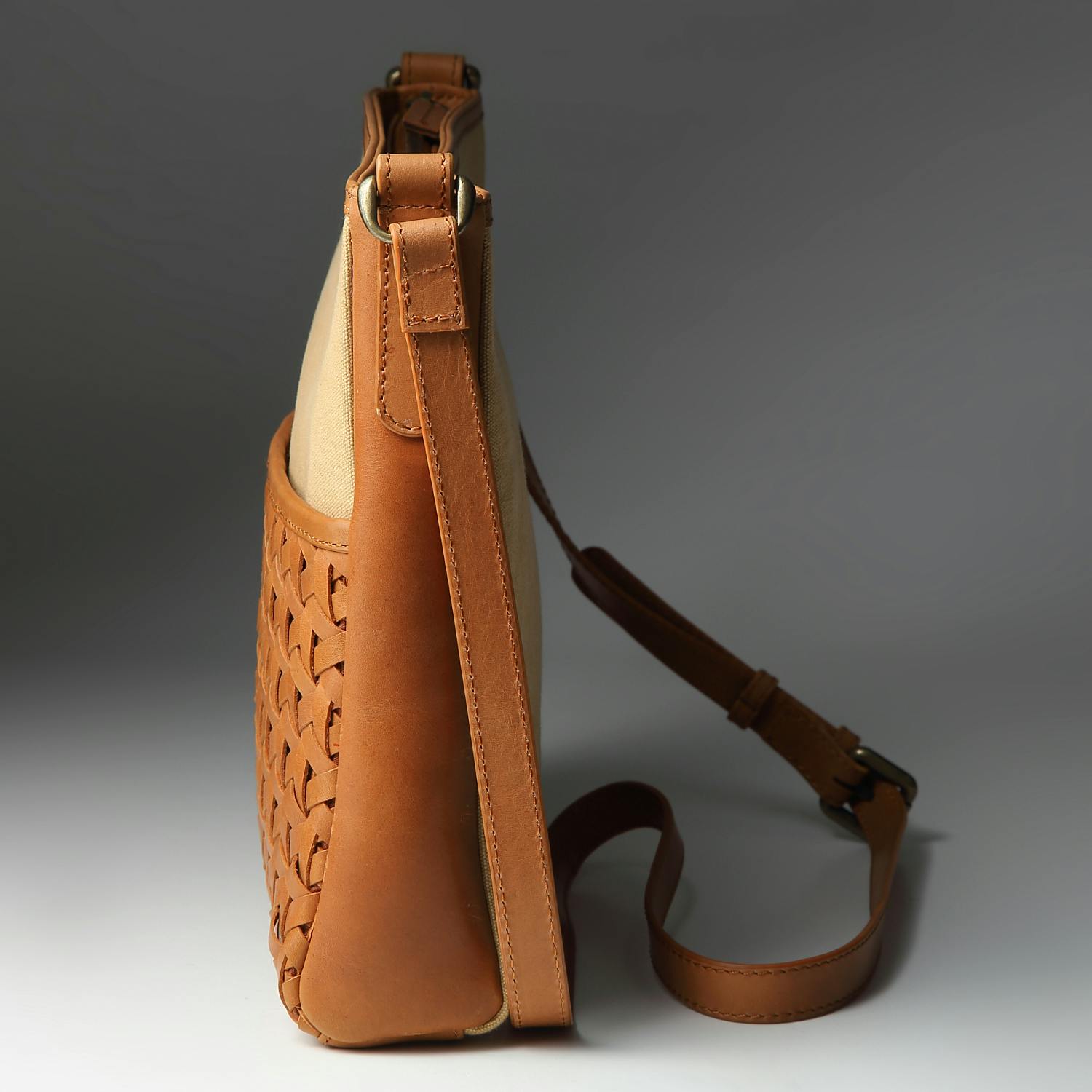 本革のイントレチャートにキャンバス生地を組み合わせたレザーメッシュバッグができました。こだわったのは、レザーメッシュの編み込み模様。独創的で複雑なイントレチャートは上質な美しさをたたえます。