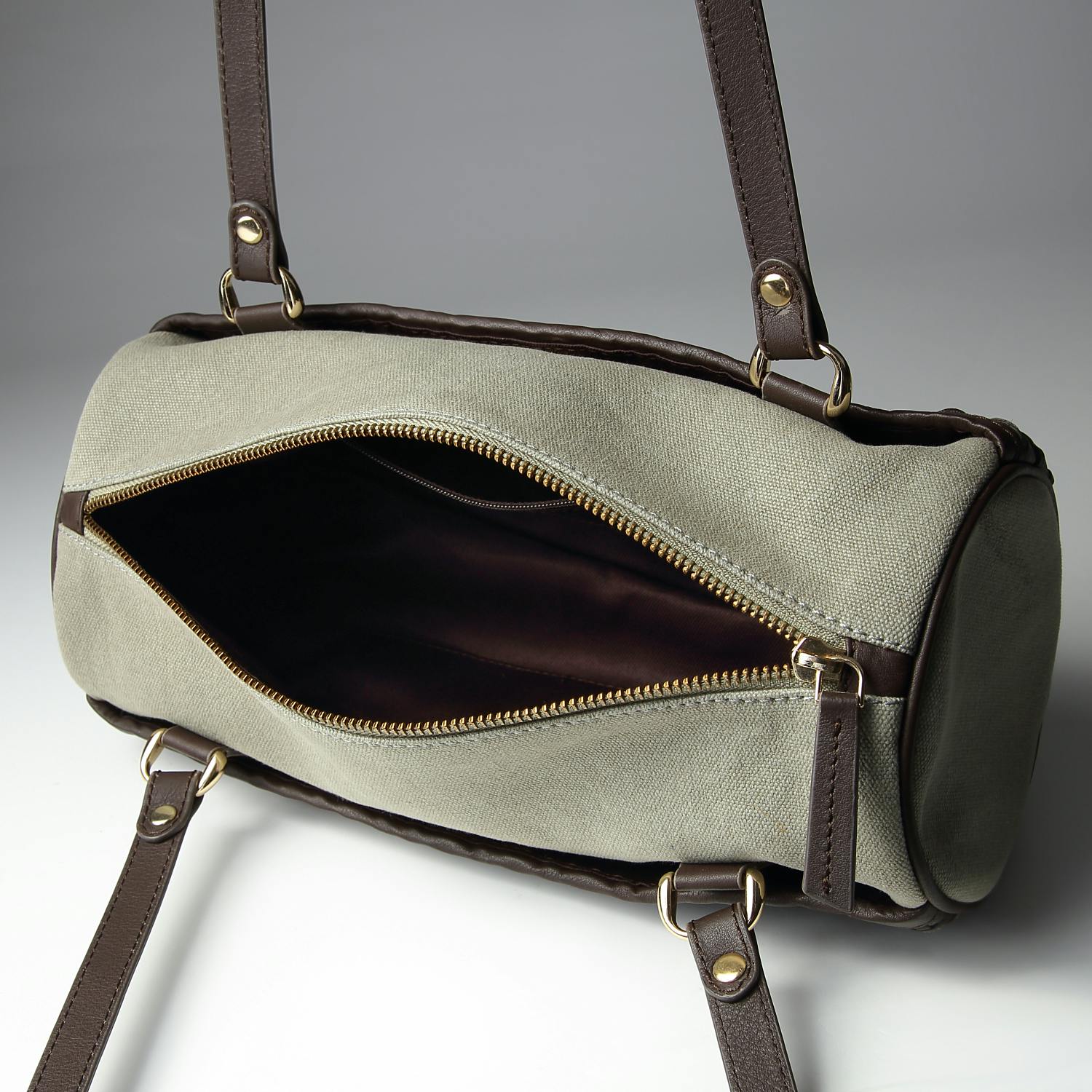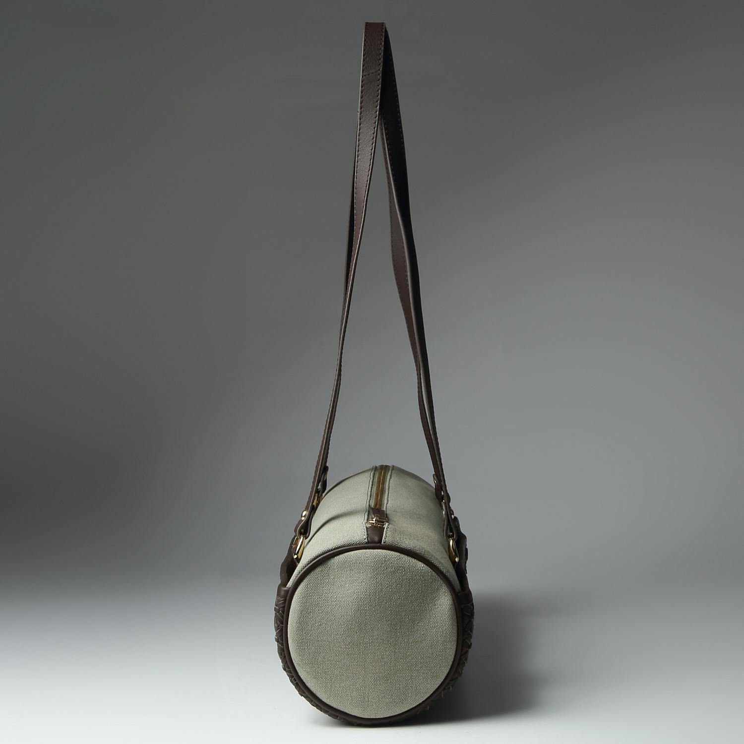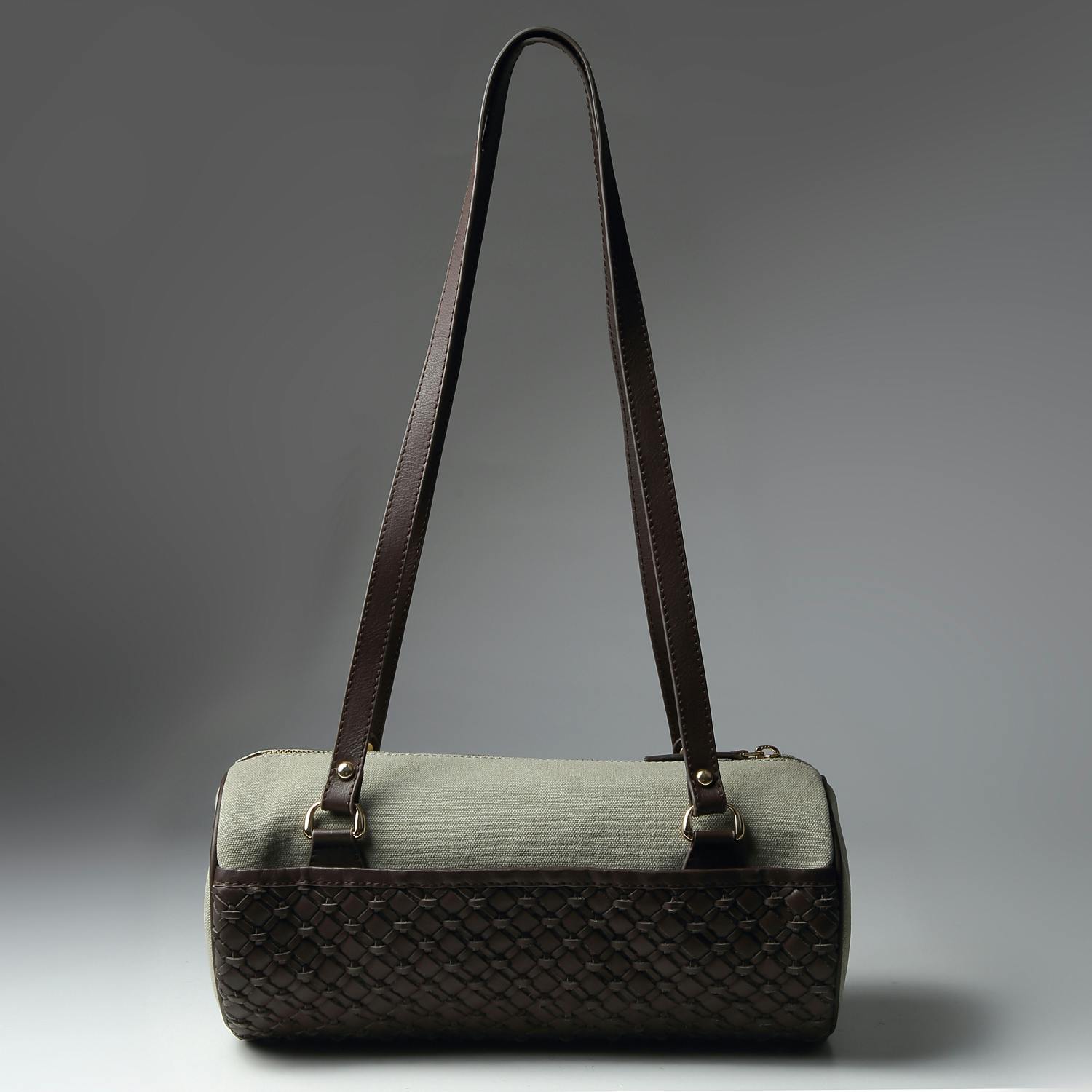 イントレチャートとキャンバスを使ったバイカラーの筒形ショルダーバッグ