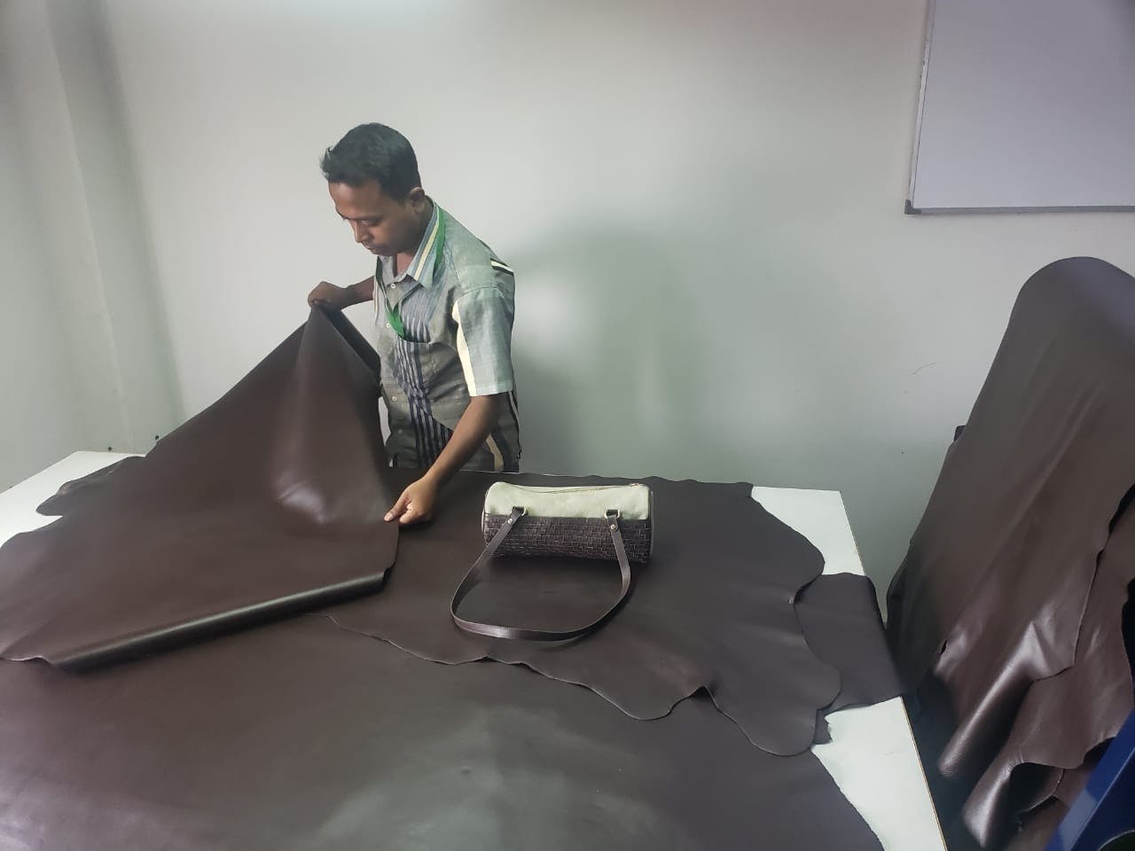 革に傷やシワがないか丹念に検品。
