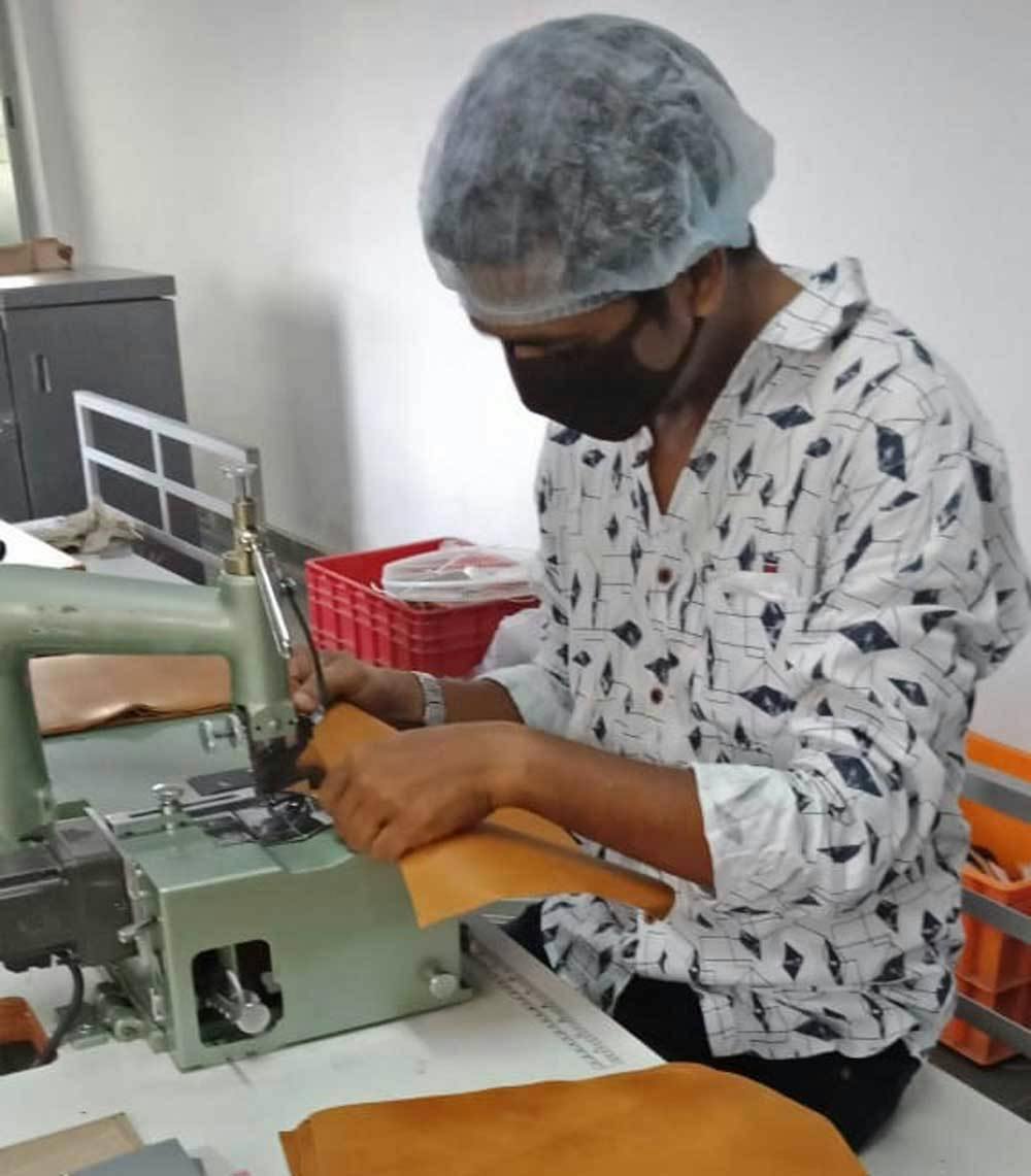 革を薄く削る漉き(すき)の作業。