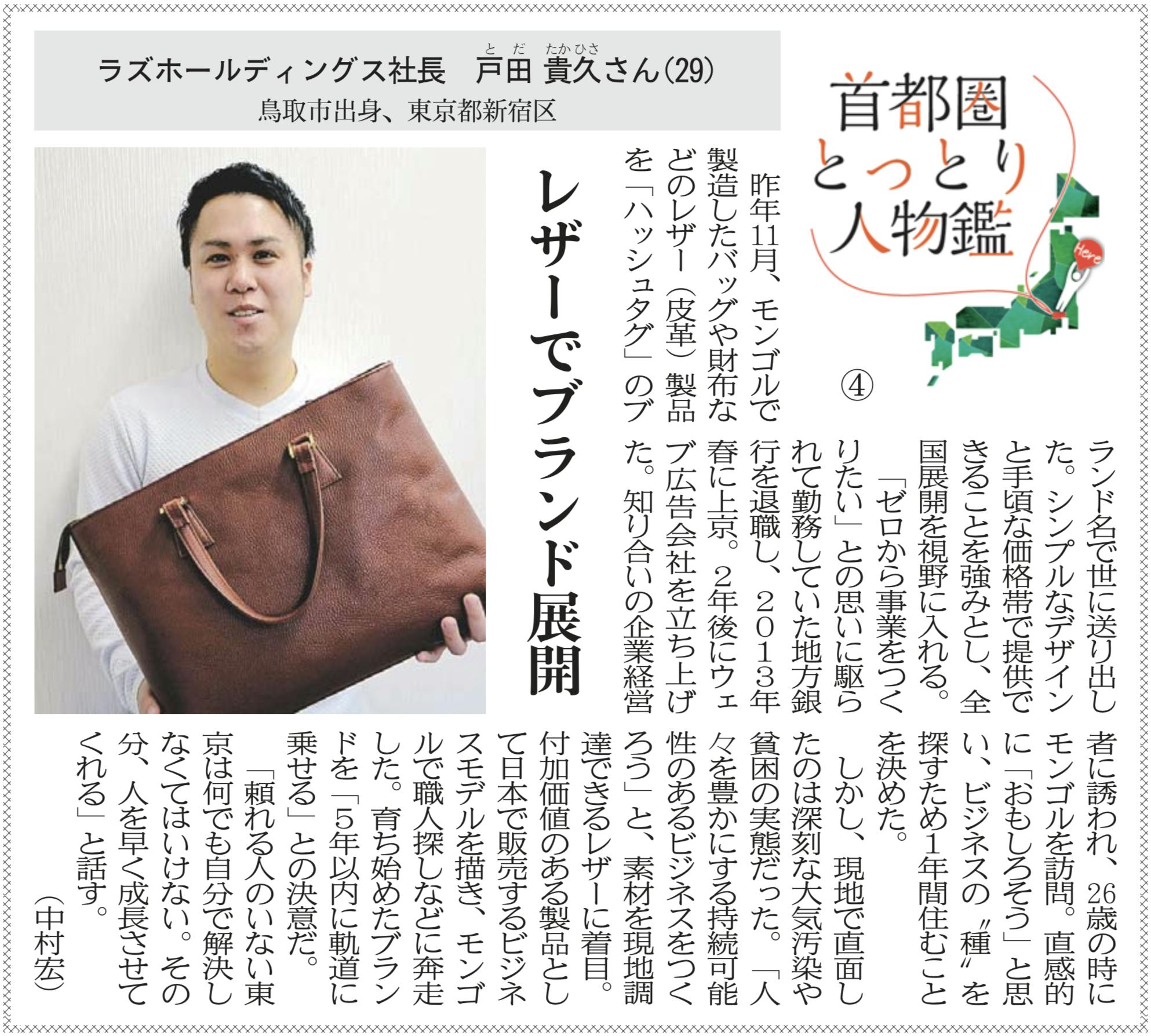 センべノー!(モンゴル語のこんにちは)はじめまして、レザーブランドHushTug(ハッシュタグ)代表の戸田貴久と申します。