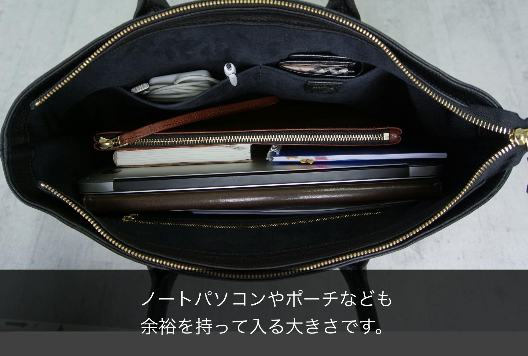 ノートパソコンや書類をすっぽり入れられるバッグを探していましたが、なかなか見つからない時に出会ったのがHushTugのカバンです。