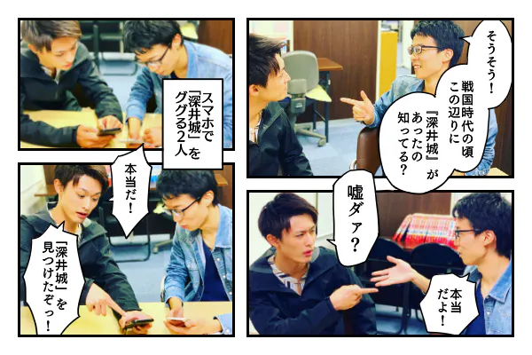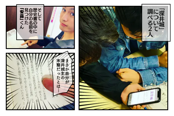 「休み時間のふとした会話をきっかけに自分が深井城主の末裔だと知った瞬間、頭のてっぺんから足のつま先まで鳥肌が立った。しかし、数分後には心の底から熱いものが湧き上がり、深井城の再現を決意した」(安蒜太一)