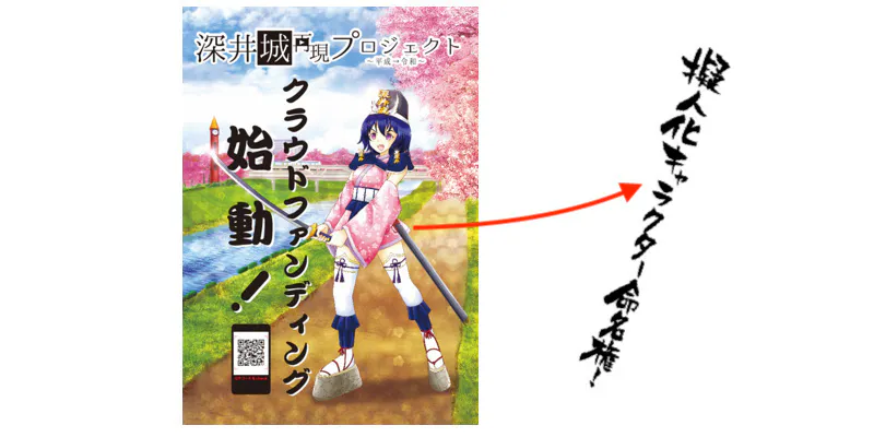 あくまでも3つの柱(ショートムービー制作・城跡地に看板設置・擬人化キャラ&グッズ制作)を通して、幻と称される「深井城」の認知を拡大することです。