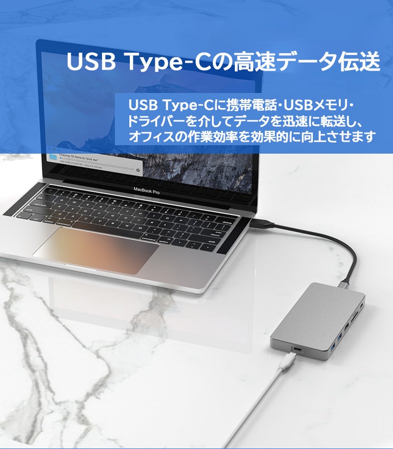・PCの1つのUSB-C端子をから7つのポートに拡張ができ、100Wのパワーで高速充電もできます。