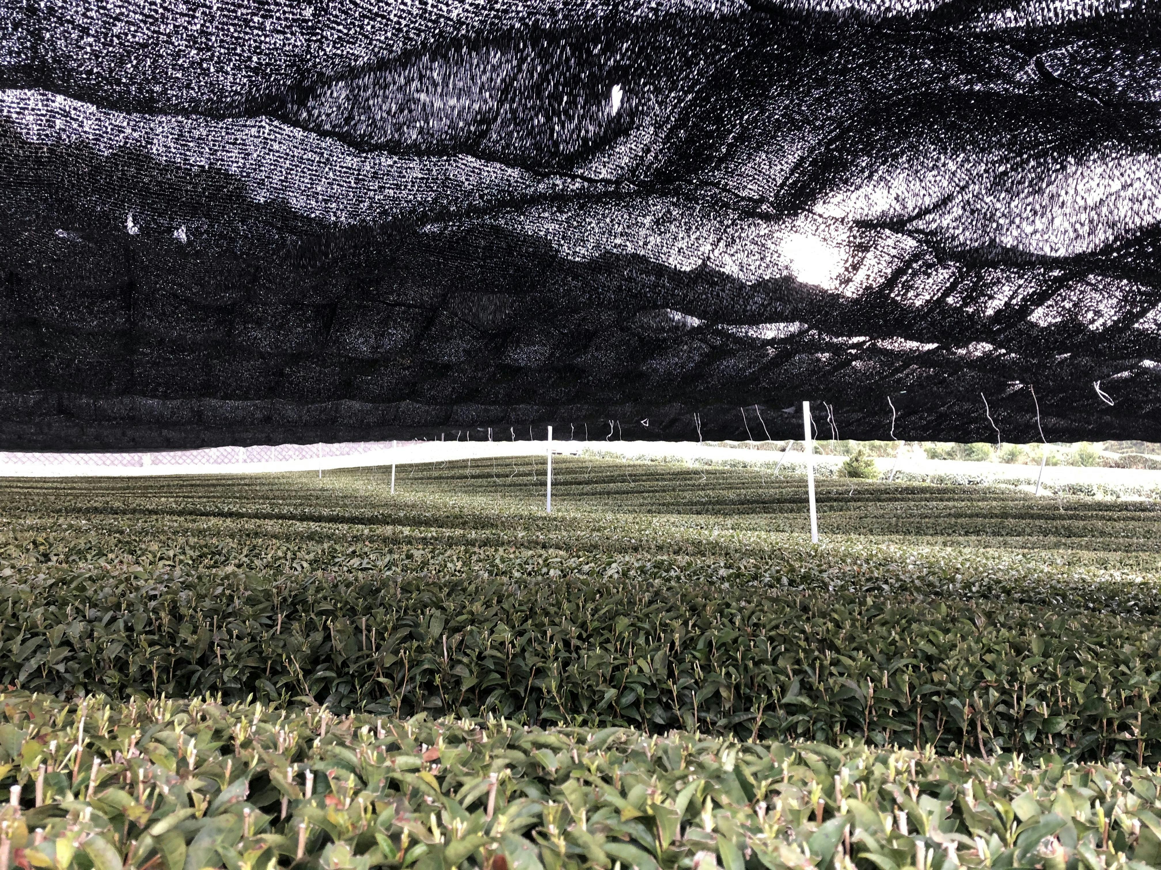 4月下旬の一番茶収穫約2週間あえて日陰を作るかぶせ茶を作るための施設です。