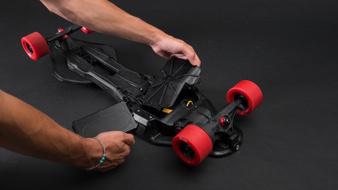 軽量:Linkyは重さは5.5キロで、電動スケートボードの中では最軽量のクラスに入ります。構造部分には重い金属部品のかわりに、自動車と同じ高強度ポリマーを使用、デッキにはカーボンファイバーと竹を使用しています。
