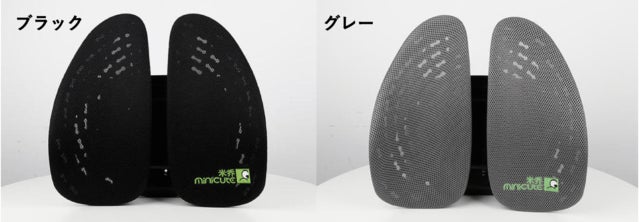 よくあるS字カーブを模したものや、クッションタイプのウエストサポートと違い、MiniCuteは2つのパッドが腰から背中全体を広く支える構造です。