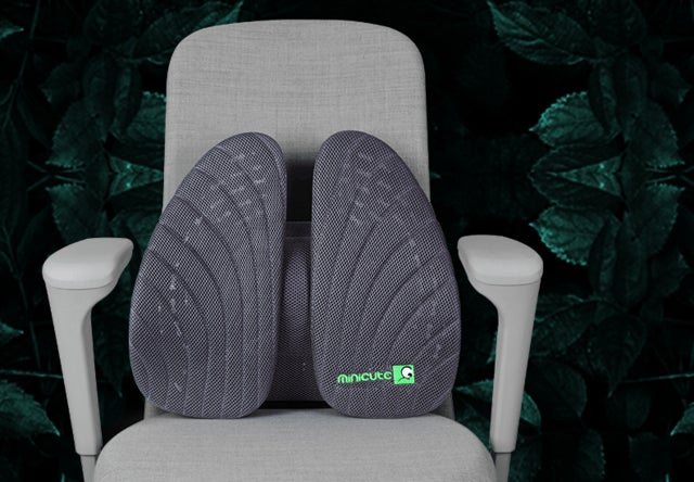 MiniCuteは椅子にセットするだけで、もっともリラックスした状態に近い姿勢を作り出します。腰から背中のラインが自然なS字カーブを描くようキープすることで約65%、腰にかかる負担を軽減します。