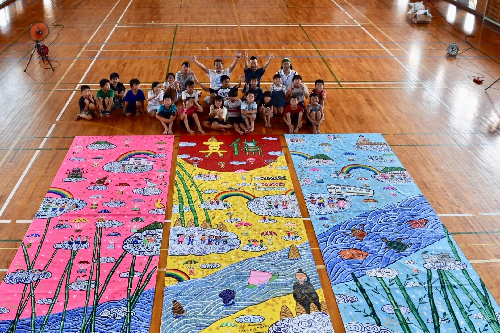 おそらく数百人が参加するイベントになると思うので、真備町の小学校の体育館をお借りして、よく学校や役所にあるような大きな垂れ幕をキャンバスにすることで、たくさんの子どもが参加できる仕組みを作りたいと思っています。