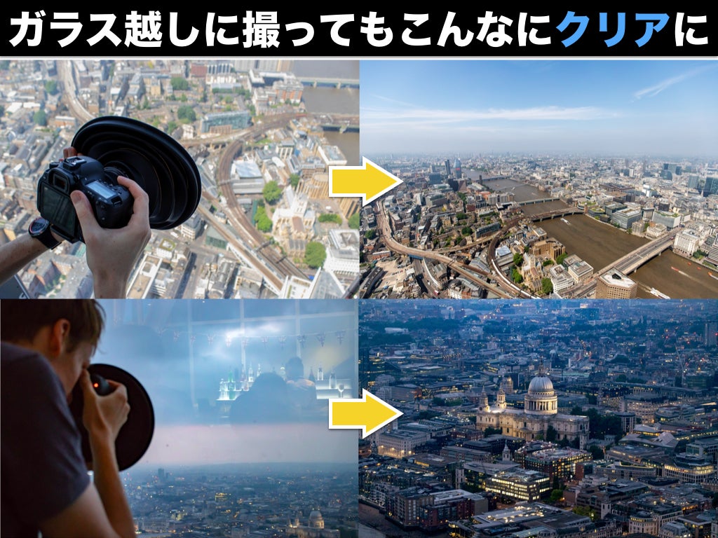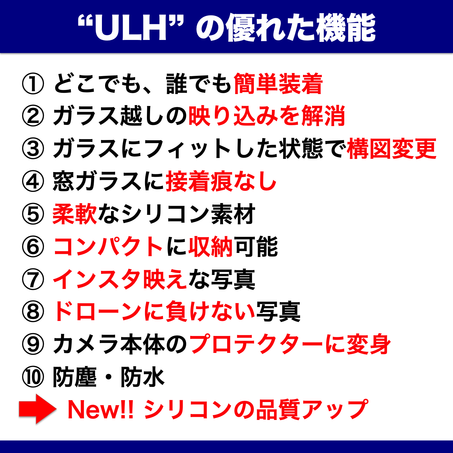 ”ULH”は、誰でも簡単に窓ガラスの向こうの景色がクリア撮影できる魔法のレンズフードです!