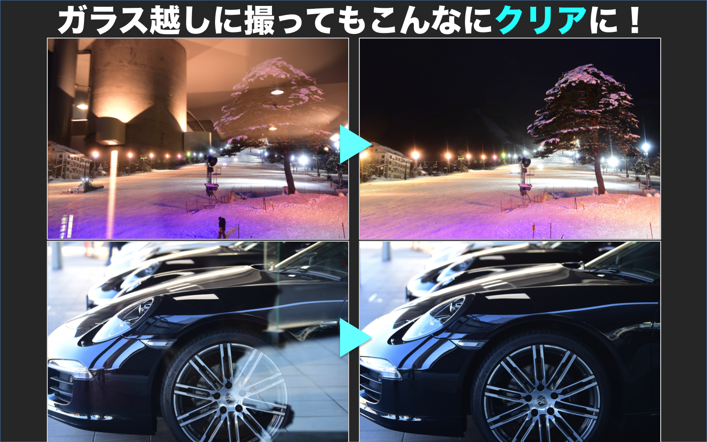 今までは撮影のたびに再生して反射や映り込みを確認していましたが、その必要はありません。"ULH"使用で映り込み対策バッチリです!