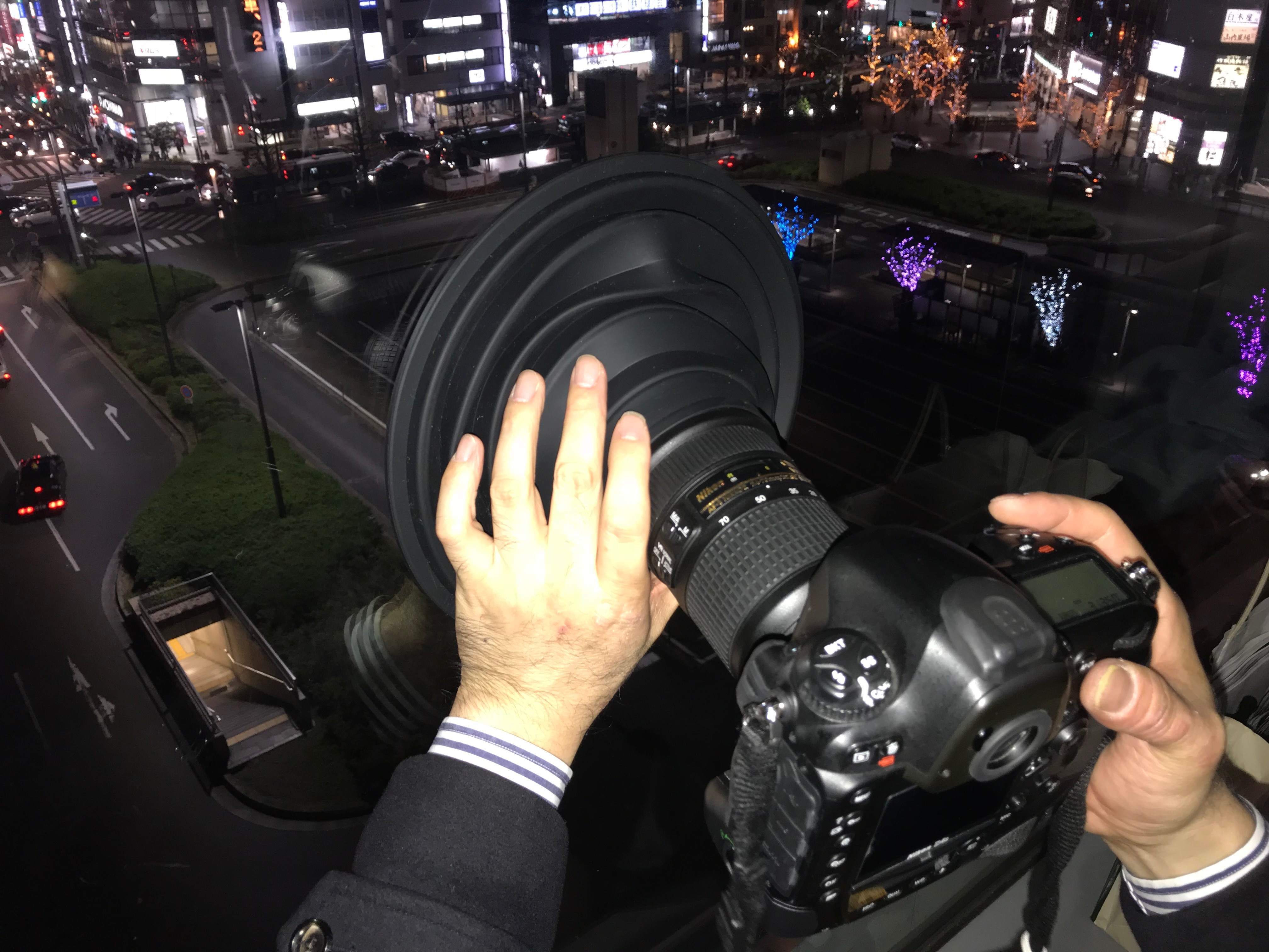 三脚を使ってガラスに近づけないという場合にも"ULH"を伸縮させて撮影可能です。