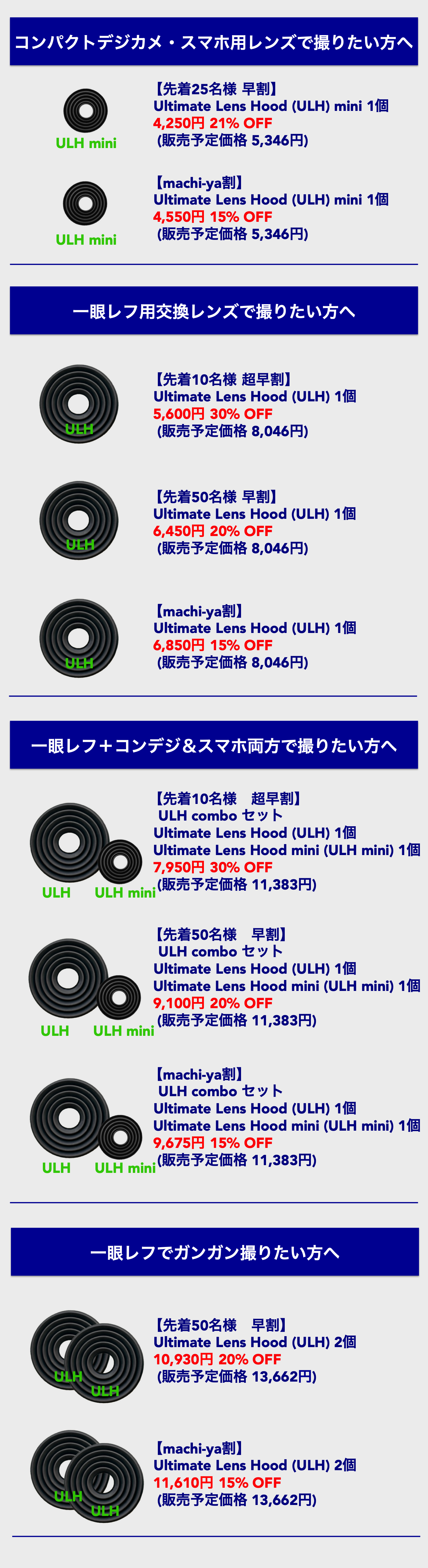 ”Ultimate Lens Hood (ULH)”は米国クラウドファンディングで6500万円を超える資金調達に成功し、使った人から「こんな商品が欲しかった!」と口コミで拡散され、現在も売れ続けています。