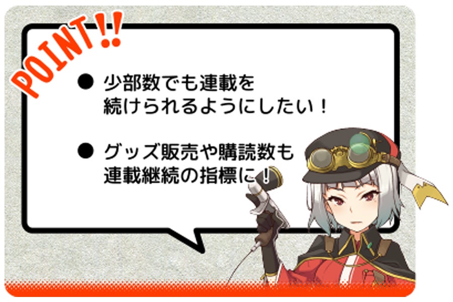 現在の出版の仕組みですと、発行部数10,000部以下ではそもそも連載を中長期に渡り続け、続刊を出し続けることが困難かと思います。重版がかかることが続刊発売、連載維持につながることはみなさんもご存知かもしれません。