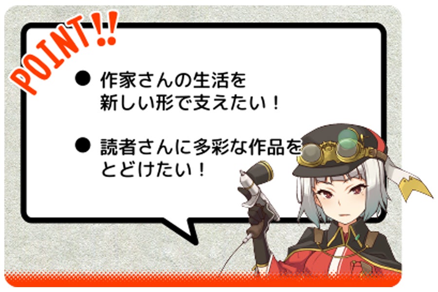 読者さんにとっては、より作家さんの存在が身近になると思います。なるべく読者さんと作家さんを最短距離でつなぐことで、自分も作品作りの力になれる、ダイレクトに支援できる仕組みを目指していきます。