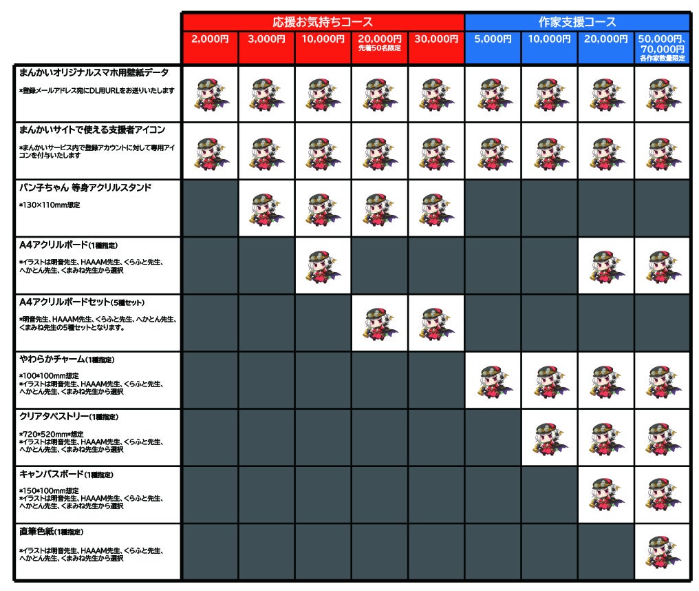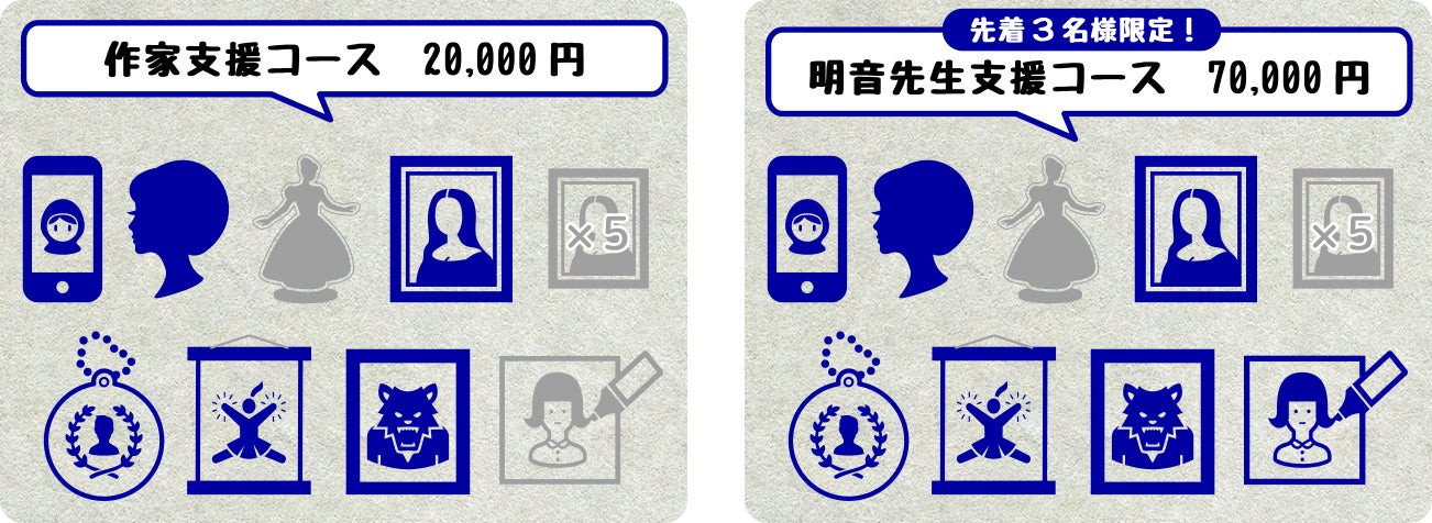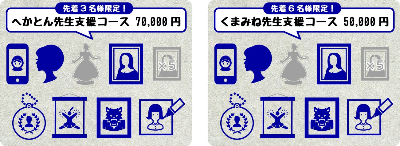 また、目標金額以上にご支援いただけました場合には、リターン品の追加や新規作品の追加などの資金とさせていただきます。