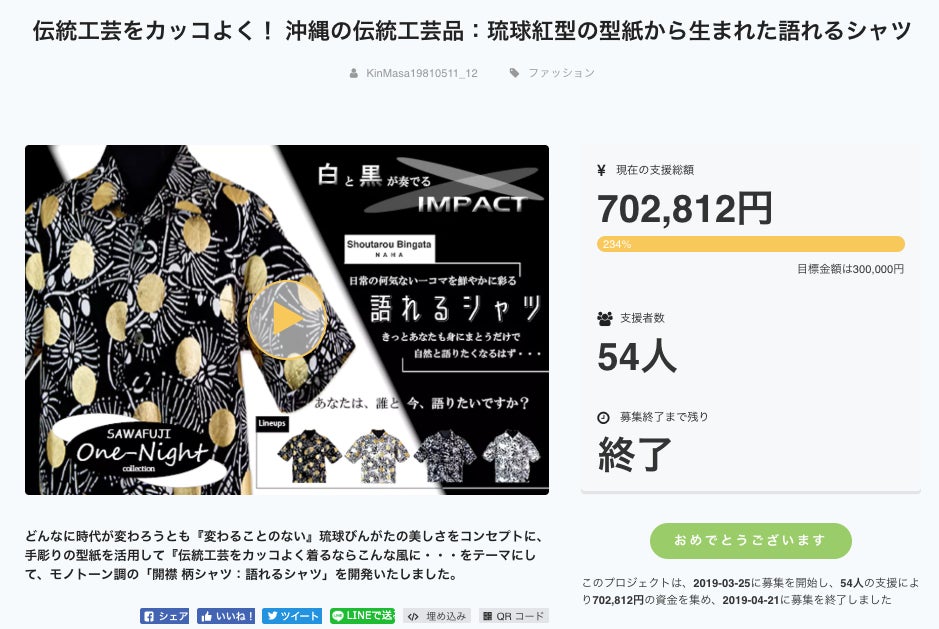 男性用のシャツだった、「語れるシャツ」にもかかわらず、伝統工芸、琉球びんがたを沖縄から全国、世界へと時代が変わっても、新たな世代へと伝えていくプロジェクトに共感いただき、女性からのご支援、ご協力もたくさんいただきました。