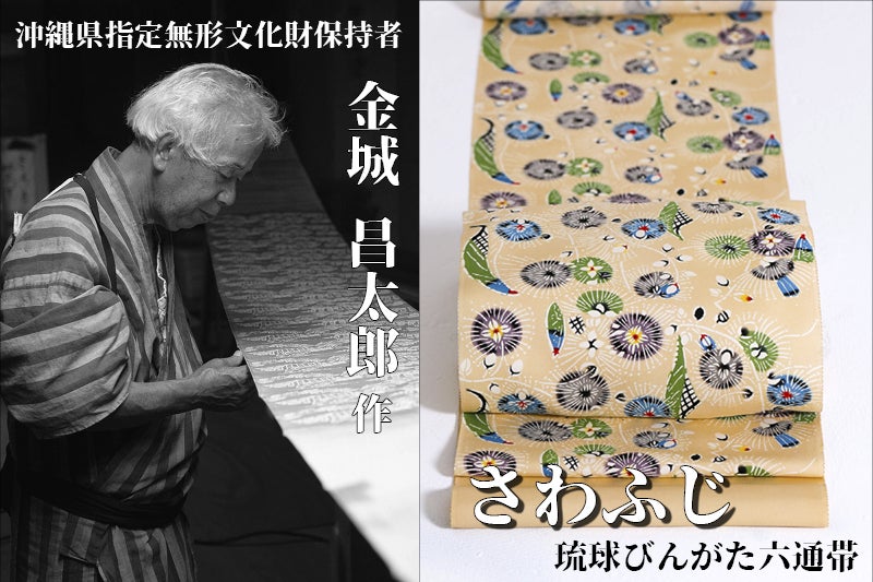 「金城昌太郎作:琉球紅型六通帯「さわふじ」」