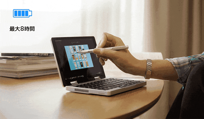 Falconの8インチのサイズは、パフォーマンスとポータビリティーを両立させる最適な大きさです。ゴージャスなIPS静電容量方式タッチスクリーンと、仕事を効率良くこなせる快適で人間工学に適ったキーボードが搭載されています。移動する際には、反対側に折り畳むだけでFalconは軽量で持ち運びやすいタブレットに変身します。