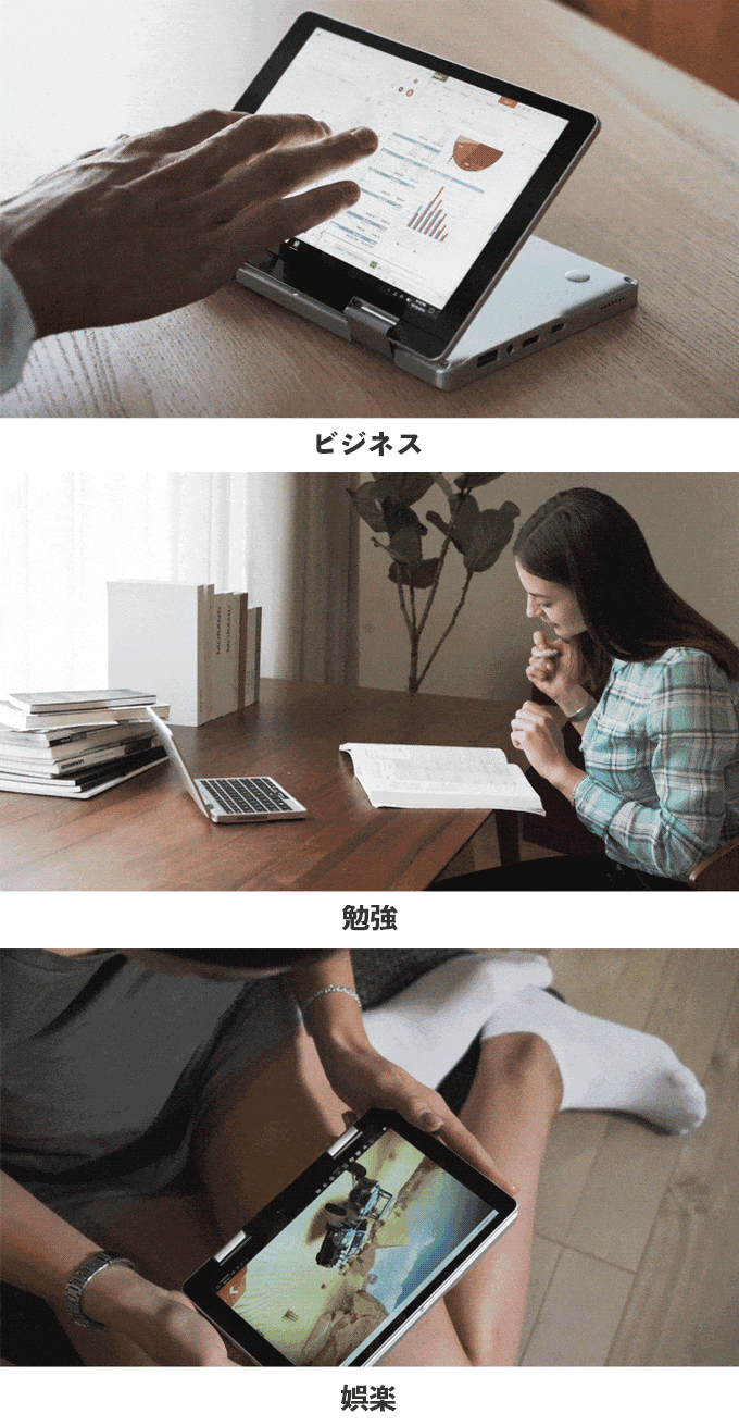 Falconは簡単にタブレットに変身させることができます。キーボードを閉じると、自動的に片手操作のタッチスクリーンコントロール状態にロックされ、自宅、オフィス、または外出先での読書やゲーミングやメモがより快適に、そして効率的になります。