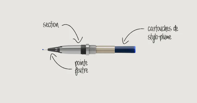 私たちのスタジオでは実際に万年筆のインクカートリッジをフェルトチップに使用しています。あなたはこのフェルトペンを長く愛用し続けるでしょう。