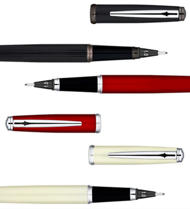 私たちのスタジオは、メタルペンに繊細な仕上げを施したデザインを3種類ご用意しました。