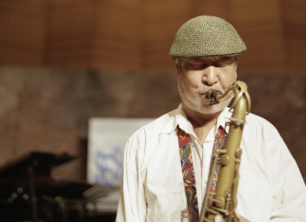 alfieでの来日公演で演奏するジョー・ヘンダーソンと日野元彦氏