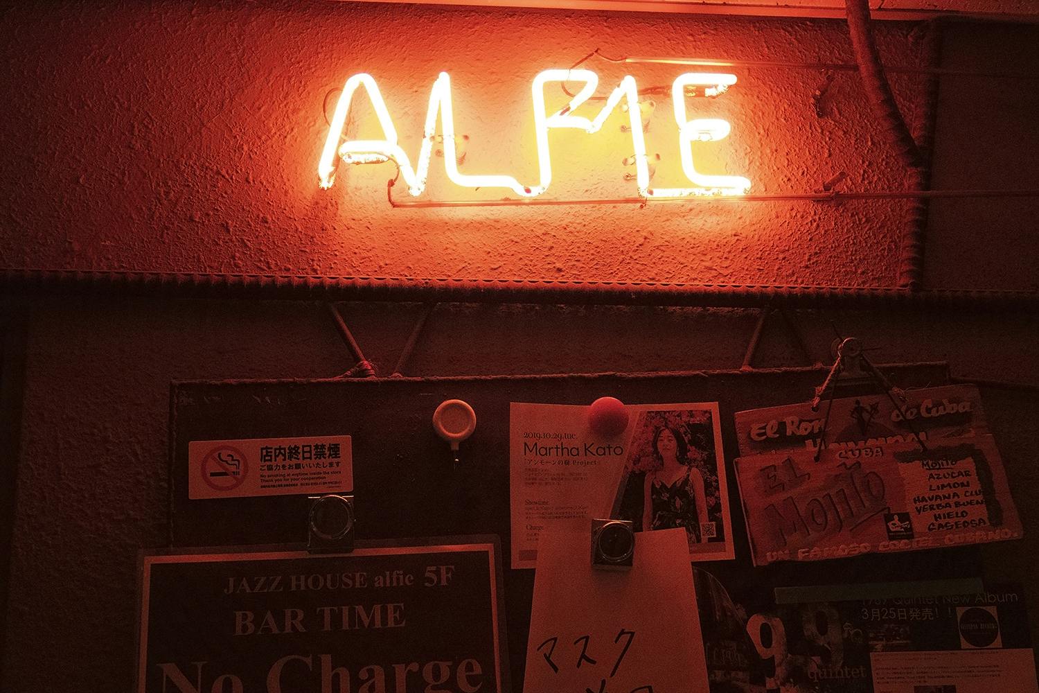 月に1、2度のラテンジャズ、ワールドミュージックの日としていつものアルフィーと少し違う、カクテル”モヒート”が楽しく飲めるような時間を楽しんでいます。多くのミュージシャンがセッションしにきてくれて、初めての出会いに感動したり海外の友人にも会えたり、仕事においても名プロデューサー伊藤八十八さんとのCD制作などなど、多くのチャンスをいただきました。