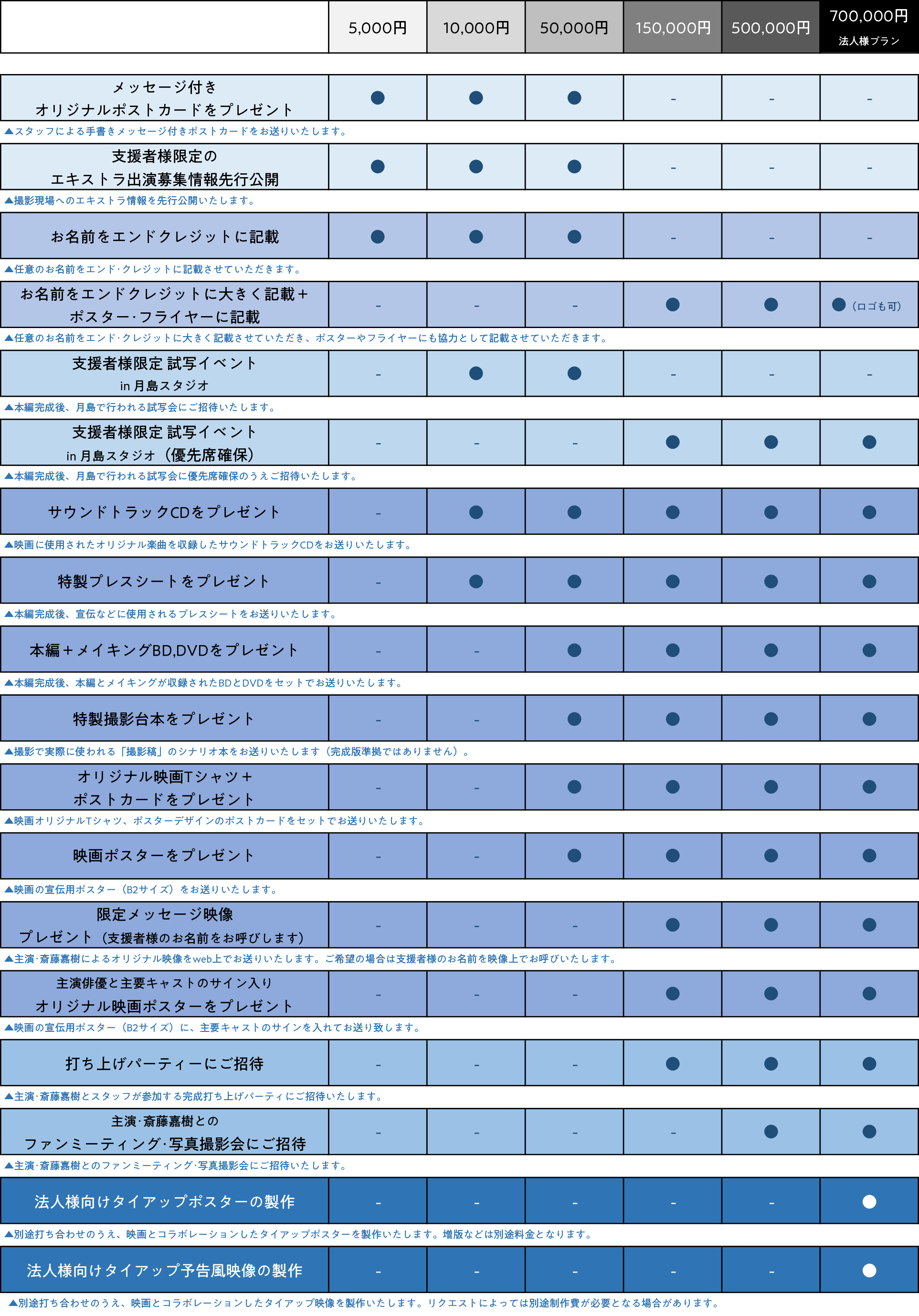 本プロジェクトにおけるリターン内容は以下となります。