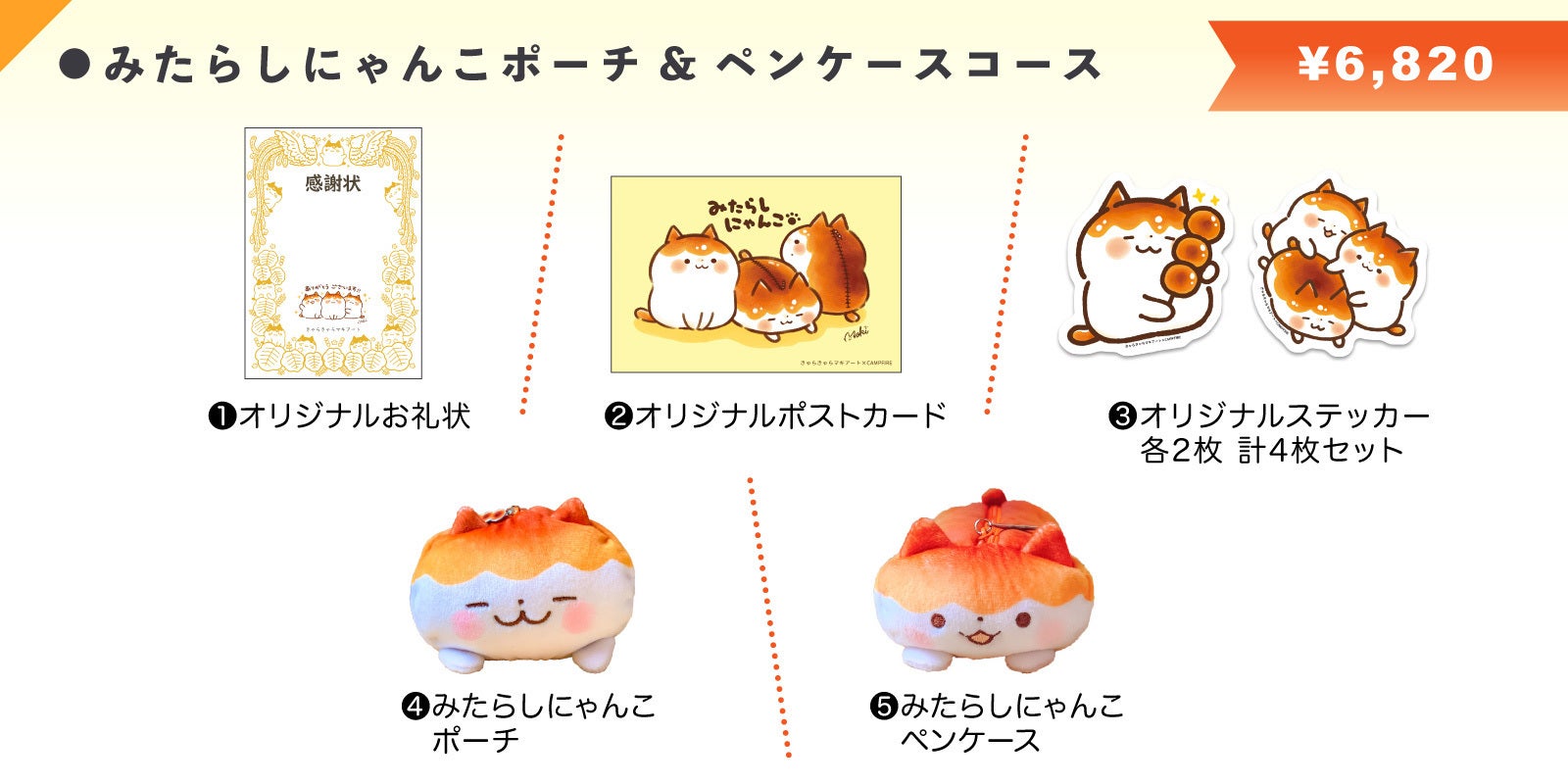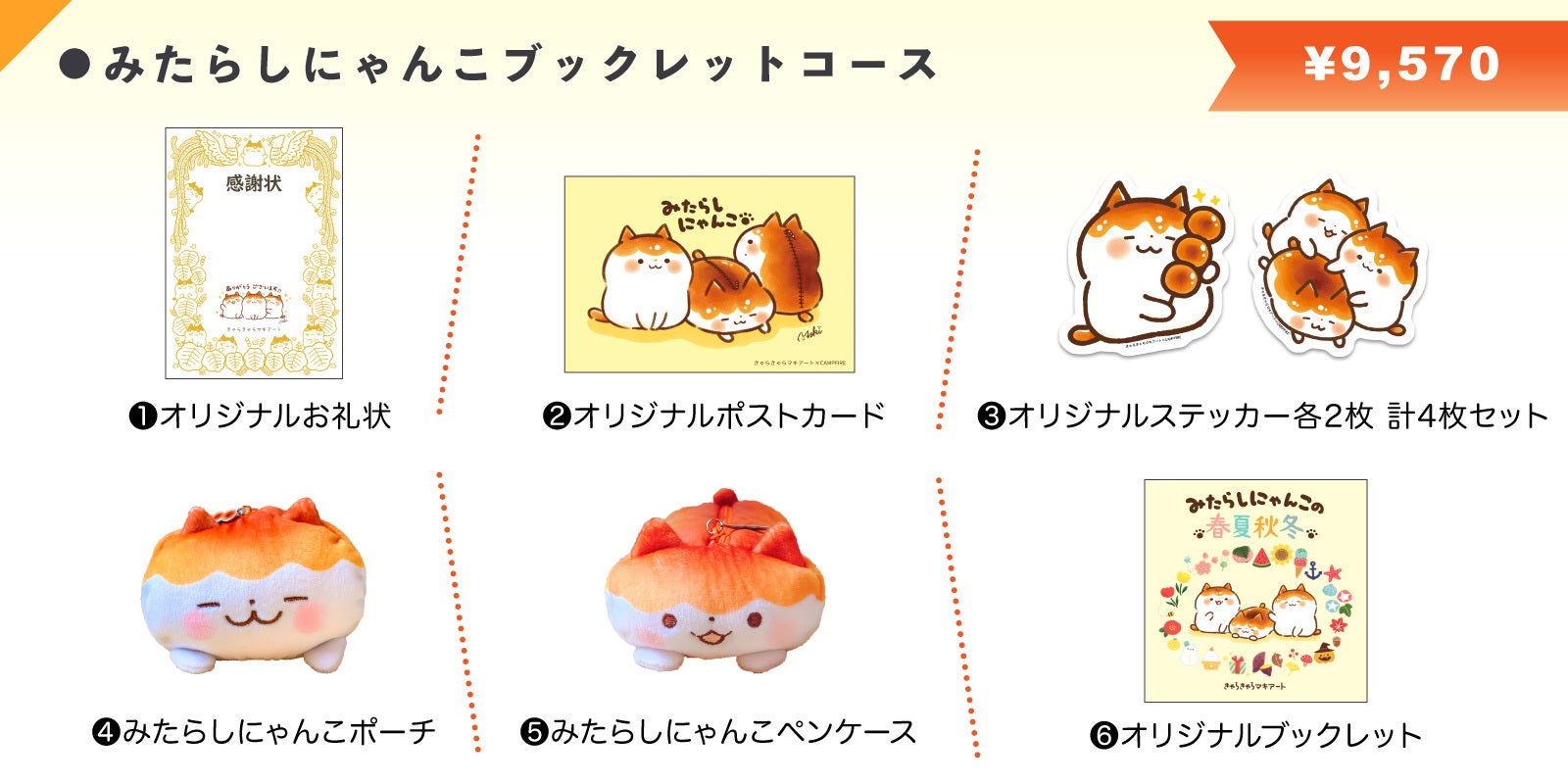 ファン必見のコースです。本プロジェクト限定の「オリジナルブックレット」とみたらしにゃんこポーチ&ペンケースコースと同様の内容をお届けいたします。