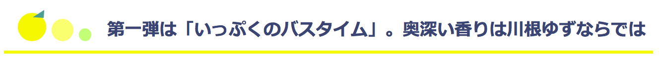 サビネン成分で奥深い香りの川根柚子を使用した入浴剤で、1日の疲れを癒し、至極の「いっぷくのバスタイム」を演出できる商品作りを目指しています。
