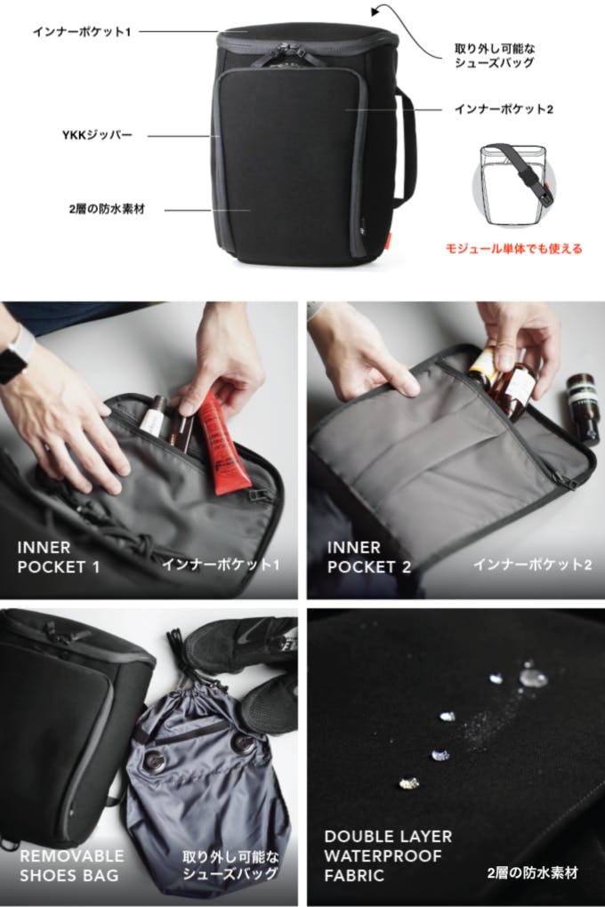 ポーチモジュールは、ウォーターボトルやジムの必需品を持ち運んだり、旅行のポーチとして使用することができます。
