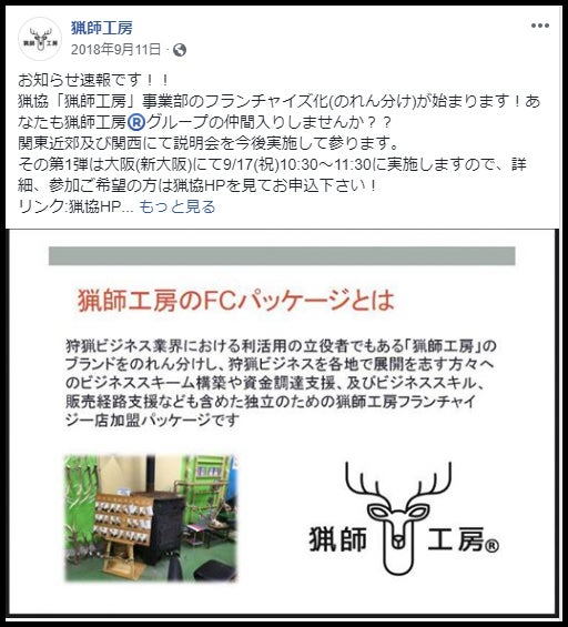 Facebookの投稿で、とある狩猟者の方々が立ち上げた会社を知ることになりました