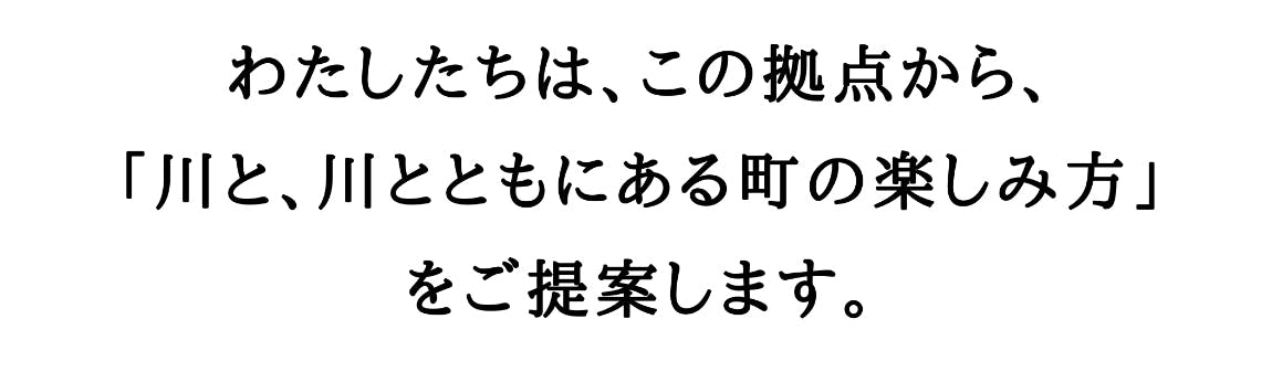 私たちは、『&n(アンドン)』を、町のひとが長良川をより身近に楽しめる拠点として位置づけます。ここを軸に、川を、町を、この地域を、楽しむひとたちが行き交う「動線」を生み出したいと考えています。