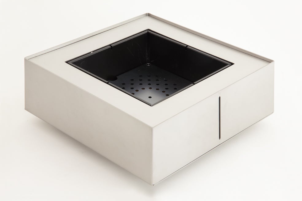 ないならば自分でつくってしまえと、一昨年の夏くらいから開発を始めました。七輪につかわれる珪藻土や大谷石、耐火煉瓦などの耐熱素材をほとんど試し、ステンレスが最適という結論に至りました。そしてシンプルにステンレス板を曲げることで完成したのが写真の商品です。伝統的な火鉢を現代の生活に合うようにアップデートしたという感じでしょうか。